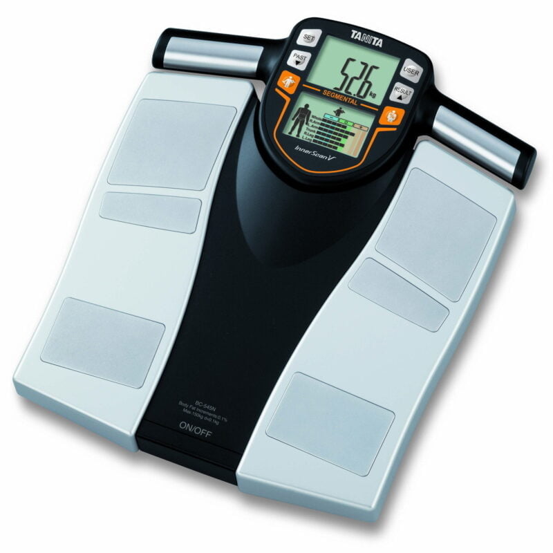 Pomoć pametne vage Tanita BC 545N liječnički pregled možete napraviti i kod kuće. Tanita BC-545N analizator mjeri i analizira napredak vježbanja i vaše opće zdravlje. Upotreba je jednostavna. Stanite na površinu analizatora i uzmite ručke. U 15 sekundi ćete dobit deset različitih mjerenja i analiza vašeg zdravlja. Također odvojeno prikazuje postotak mišića i masti u svim rukama i nogama. Analizira također i vaš trbuh. To vam omogućuje analiziranje vaših mišića, postavljanje ciljeva za određena područja i sprečavanje težih ozljeda. Analizator Tanita BC-545N ima jasan zaslon u boji koji je veoma jednostavan za čitanje. Analize mogu pratiti najviše pet korisnika. Rezultati analiziranja se čuvaju do jedne godine. Tanita automatski prepoznaje koji korisnik stoji na uređaju što znači da svoje podatke ne trebate unositi svaki put nego samo tijekom prvog korištenja.